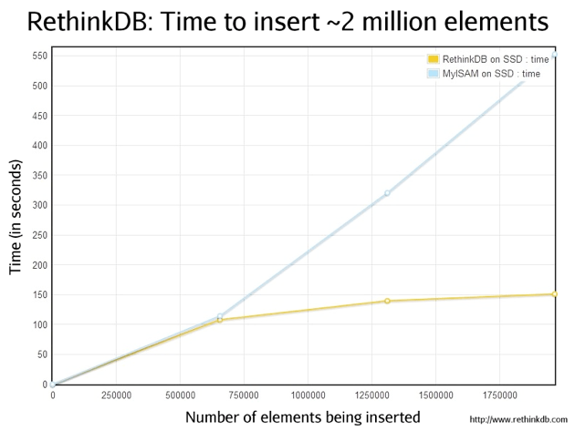 It’s been a long time coming, but the computer industry is finally making headway in the switch from old-fashioned, platter based hard drives to the solid state drives (SSDs) found in iPhones and many other electronics. The benefits are obvious: unlike their platter-based counterparts, SSDs have no moving parts, and they’re also significantly faster for many tasks. Unfortunately most software, both server-side and otherwise, has been optimized for the older drives and the physical limitations that come with them. RethinkDB is a new startup that’s looking to capitalize on this problem by building a storage engine for mySQL databases that’s fully optimized for SSD drives, bringing with it large speed boosts and a number of features sure to catch the eye of many developers.
