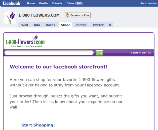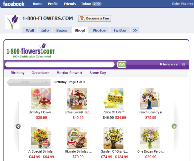 In another testament to the notion that Facebook is quietly turning into the internet on top of the Internet, online flower retailer 1-800-Flowers.com has launched an e-commerce store inside its Facebook Page.
