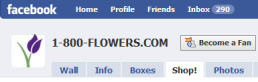 1-800-FLOWERS.COM has teamed up with ad network / app developer Alvenda to bring its store to a potentially massive audience on Facebook (although only some 1530 people have become a fan of the florist shop’s Page so far). I’m told future versions of the store will integrate more robust social features, including birthday calendars and group gift giving options.