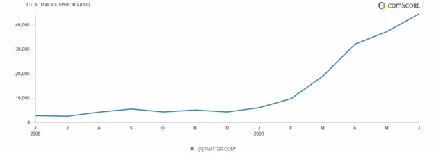 Well, Twitter didn’t win a Nobel Peace Prize for its role in getting the word out about the Iran election protests earlier this summer, but it did gain about 7 million new visitors in the month of June. Twitter’s website attracted a total of 44.5 million unique visitors worldwide in June, 2009, according to comScore.