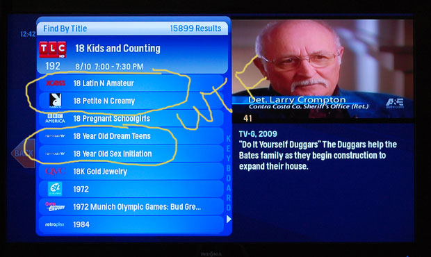 I still have one major issue with the Moxi HD DVR and that’s the search tool. As a family man, I really don’t want my child seeing descriptions of 18 Petite N Creamy, 18 Year Old Dream Teens, or any of the hundred other programs shown in the search tool. The problem is that these stations are available from Comcast, and even though I don’t subscribe to them (promise), all the programs show up in alphabetical order starting with numbers. This is a major problem I noted in my review that still hasn’t been addressed. The search tool should not show you programs on stations that aren’t available, pornographic in nature or not.
