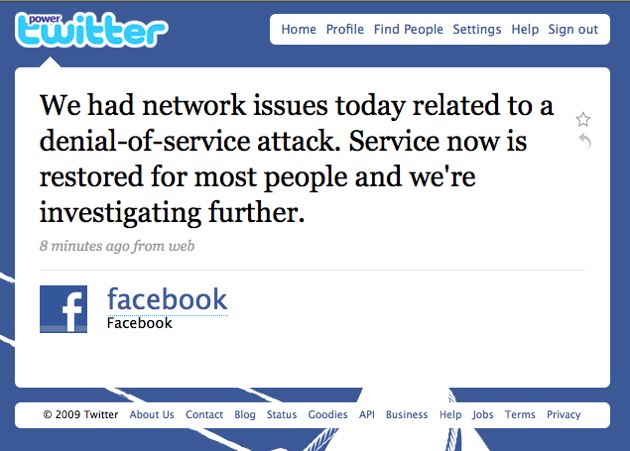 A DDOS attack this morning took Twitter out at the knees and they were down for hours. Rival Facebook faced a similar attack (likely related), but for the most part managed to remain online. Some users couldn’t access the site or post content, but the site remained online for most users.