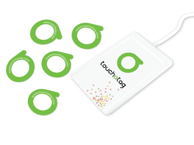 Touchatag is an RFID and QR system that uses a web-based client to interact with your PC. The starter package with a reader and ten tags costs $39.95 and tags cost $24.95 for a pack of 25. 500 tags cost $474.95 but what the heck do you need 500 for?