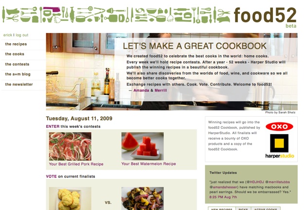 These days, more and more books have accompanying Websites and smart authors even try to attract readers online before the book is even published. Sometimes they even try to enlist those potential readers into contributing to the book (for free). Brooklyn food writers Amanda Hesser and Merrill Stubbs are crowdsourcing their next cookbook on a site that just launched in private beta called Food52 (it will open up on September 15, but you can sign up now for an invite at the site). Hesser is a food critic for the New York Times and an author of several cookbooks (including Cooking For Mr. Latte, The Cook And The Gardener, and the upcoming New York Times Cookbook). Stubbs is a freelance food writer and recipe tester.