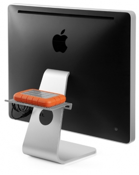 Sweet jumping Jehosaphat on a carbon rod! LOOK AT THIS! It’s a shelf! That holds stuff! Behind your Apple monitor! It costs $29.95 and it is so amazing I had to look at this image twice just to remind myself of the feeling of fear and awe I felt when I saw this the first time. This thing “uses two adjustable clips and gravity to literally perch on the desk stand of iMacs and Cinema Displays.” LITERALLY PERCH! Unless my brain deceives me – and it has – this concept is so new it’s not even patented yet.