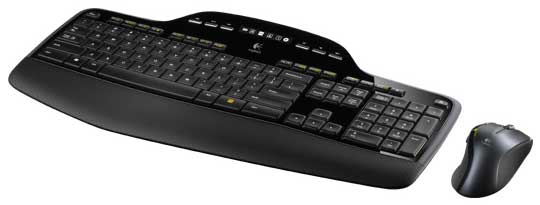 Whatever. The new MX 700 is a wireless set and both the keyboard and mouse operate on a 2.4 GHz band. The top of the keyboard features a narrow LCD that displays the battery status, caps lock, FN, scroll lock, number lock, and mute. That battery status icon probably doesn't have to be there either as Logitech claims that the keyboard can run for three years on battery.