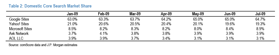 Since then though, the landscape has changed dramatically: Yahoo search will soon be powered by Bing. When the Yahoo/Microsoft search deal was announced Yahoo EVP Hillary Schneider discounted the impact of this market share erosion, stating, “seeing Bing as a live experience was a nice assurance but did not change our rationale or timing.” But it’s hard to believe that Bing’s strong start didn’t have an impact on the deal.