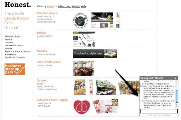 While Olark has a free offering, you can add different functionality to the chat widget starting at $5 per month. One paid feature is the ability to hide the widget on the site when the site owner isn’t available to chat. You can also implement chat in certain pages while restricting chat on others. While most customers will use the free version of the widget, paid clients have been doubling every month and the startup is in line to hit profitability next month. Olark is already being used already on 4000 sites, including SurveyGizmo.com and HonestIdeas.co.uk.