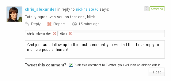 In a post on the TweetMeme blog, founder Nick Halstead gives a preview of the commenting system he is getting ready to release On TweetMeme itself in the next few weeks. (The announcement comes on the same day that competitor Retweet is launching, and is a bit of a preemptive move to try to announce something better).