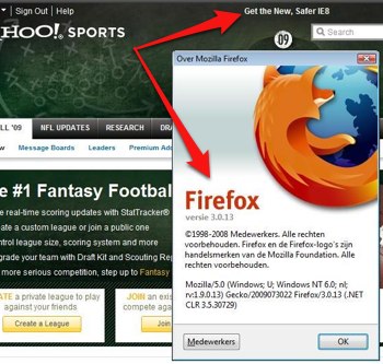 As an aside, one Yahoo employee complained this morning that all Yahoo is doing is recommending IE users upgrade to IE8, and Firefox users upgrade to Firefox 3.5, which isn’t the case. After calling Robin an idiot and accusing him of not fact checking, he later apologized. We accept.