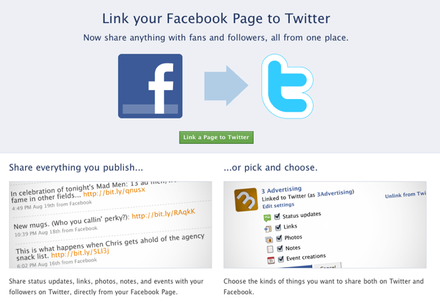 It may not sound like much, but this is a big deal. Up until now, it’s been quite easy to import Twitter updates into Facebook, as there are a variety of Facebook apps that let you do it with varying degrees of control. But it’s always been a one-way road — there was no easy way to transfer Facebook updates over to Twitter. Today that changes. Page managers will be able to share all updates to come from their Pages, or they can pick and choose which types of content they’d like to share over Twitter.