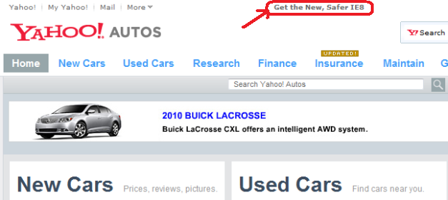 Apparently, Yahoo recommends browsers based on what their latest business alliances are. (update: or as Michael puts it, Apparently The Safest Browser Is Whoever Is Paying Yahoo The Most)