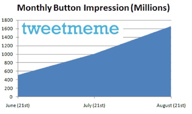 But how many retweet buttons are actually out there and how many people click on them? When it comes to the spread of the buttons themselves, TweetMeme offered some stats today showing that its retweet buttons are now getting 1.6 billion impressions a month. That number has quadrupled in the past two months alone. New retweet market entrants have a lot of catching up to do. And Just wait until retweet buttons start appearing on individual comments as well.