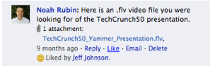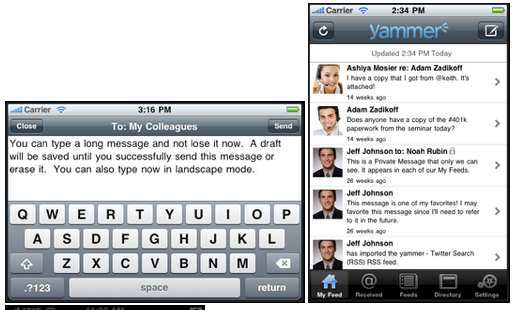 - Likes — Yammer is adopting the feature popularized by Friendfeed and later “borrowed” by Facebook. However, Likes in Yammer aren’t just virtual pats on the back — every time you Like something, it will be shared with everyone in your network, which means that Liked messages grow virally.