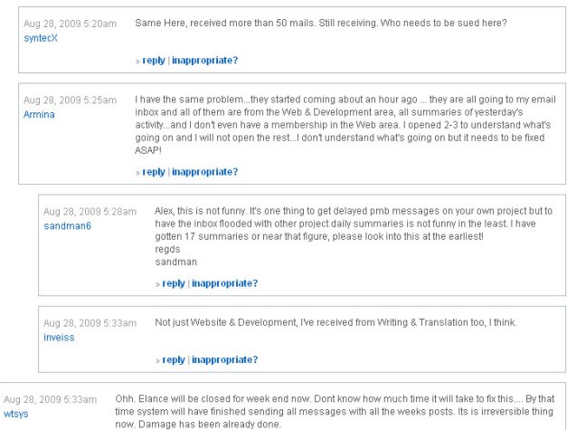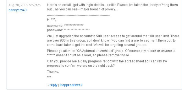 The company has been alerted to the problem by members since the security breach became apparent a couple of hours ago, but Elance has apparently not dealt with it yet nor responded to any inquiries, says Jafri and numerous others in the website forums. We’ve contacted the Mountain View company as well but haven’t heard back so far.