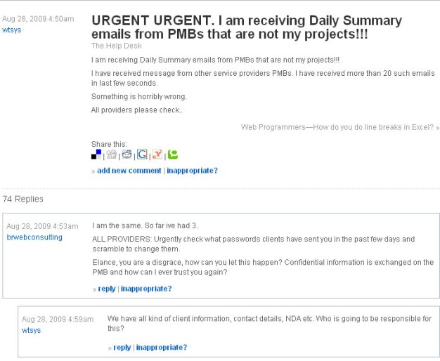 Elance members reading this: you might want to verify what you’ve sent your clients the last few days and change any login credentials you’ve passed on. Who knows who else has been reading along.