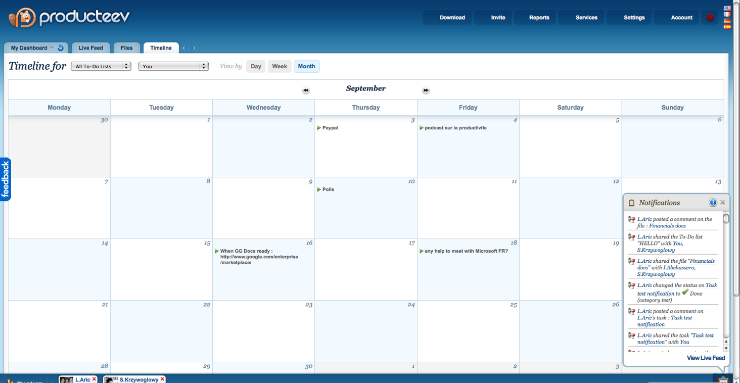 There is also now a timeline/calendar view, which comes in handy since every task can be assigned a due date. (The other views are a dashboard grid that is similar to Netvibes or iGoogle, and a straight, chronological activity stream). Workers can now generate reports based on their tasks in progress and completed, which they can show to employers to prove they’ve been working (oDesk anyone?). Soon Producteev will add graphs as well for productivity tracking at a glance.