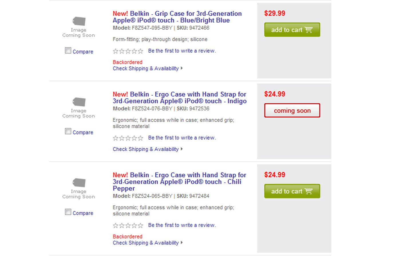 Apparently Best Buy didn’t get the memo that the new iPods might be delayed because if you look right now, you should see product listings for the unannounced iPods. However, these listings don’t reveal anything new or different than other leaks. It’s just all of us are antsy to see what our glorious master will bestow upon us tomorrow.