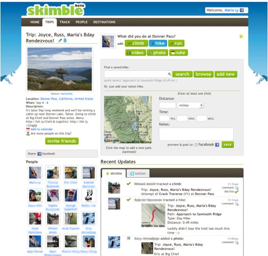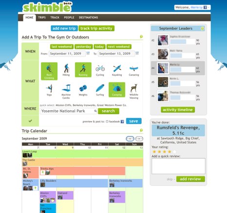 You can also share your trips and activities with Facebook via Facebook Connect on the site. Competitors to Skimble include DailyBurn. And Skimble plans to release a mobile app to let users plan and track on the go.