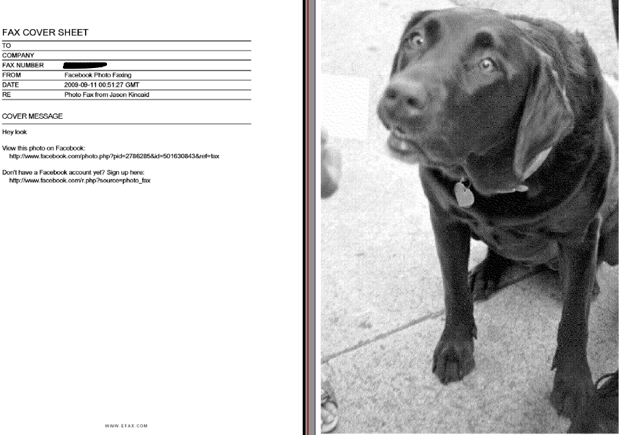 Earlier today TechCrunch writer Jason Kincaid noticed something new on Facebook. When viewing any photo, it showed a “Fax This Photo” link on the bottom right of the screen. Ridiculous? Yes. But everyone in the TechCrunch network saw it. He fired off an email to Facebook at 5:05 pm. When they didn’t respond, he posted at 5:29: Facebook Now Lets You Fax Your Photos. I Have No Idea Why Anyone Would Want To Do This.