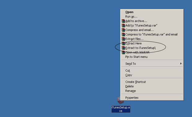 - Click “Extract To iTunesSetup\” to make a folder with all the contents of the installer