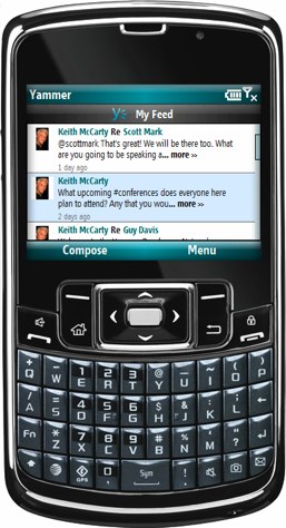 Yammer’s Windows Mobile app is similar to its Blackberry app, but is has a sleeker interface. You can view feeds, post updates and replies, look up colleagues, and place calls to colleagues from your Yammer network.
