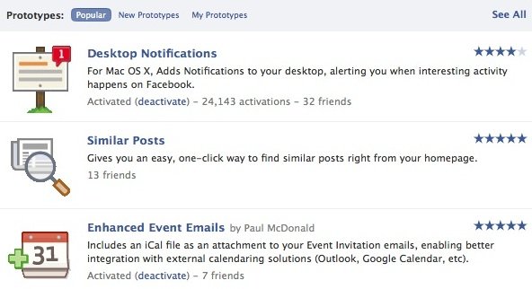 Last week we stumbled across an impressive new Facebook Desktop Notification app for Mac, which had apparently been developed by a Facebook engineer but wasn’t being officially supported by Facebook (don’t let that deter you from downloading it, as it’s fantastic). At the time, we also noticed some interesting references on the page to something called “Facebook Prototypes“, which we speculated may have been a new project similar to Gmail Labs that would let users customize their Facebook experience using experimental new features. Turns out, we were right: Facebook has just taken the stage at TechCrunch50 and announced Facebook Prototypes — a new section of downloadable applications and on-site features that were developed by Facebook engineers as side projects. You’ll be able to browse the Prototypes here, though it appears they aren’t live for everyone quite yet.