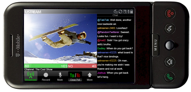 Tonight, Google’s Android platform is getting another application that gives it functionality iPhone users can only gaze at longingly. This time, it’s Ustream, a mobile streaming application that lets you broadcast video directly from your phone. The application will be available on the Android Market by 9 AM PST tomorrow morning.