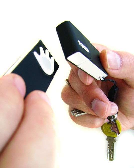 Poken, those little thingers that you touch together to trade contact info we talked about last SXSW, are now smaller. The Poken Pulse is a 2GB memory key with Poken RFID scanning built in. When you tap your Poken onto another person’s Poken it trades contact information and, um, to quote the website “we’re glowin’ green, killin’ two ‘birds,’ and savin’ trees.”