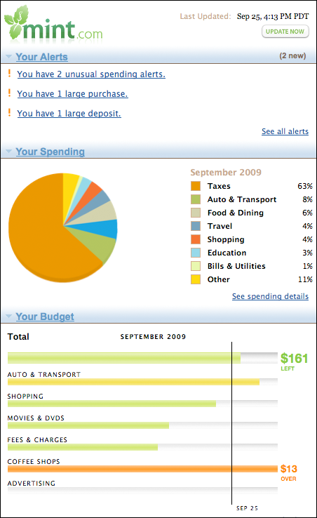 Here is what the Budget by Mint widget looks like when it opens up in Yahoo: