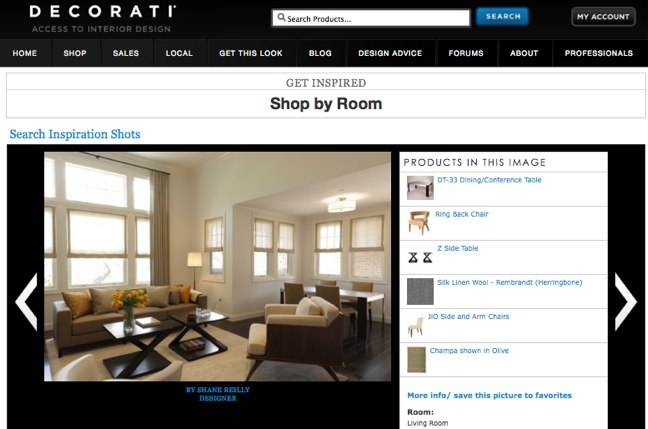 Another compelling feature on Decorati is the ability for interior designers to upload portfolios and tag each piece of furniture and accessory with identifying information. This benefits the designer because the portfolio is linked wherever the product shows up, and it lets the consumers can see how to use the product.