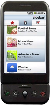 Sidebar will recommend daily content to you within the app, including videos, games, music, apps, ringtones, podcasts, promotions, news articles. The app will load no more than 12 content recommendations per day, which will last for 24 hours until the next batch of recs are sent to you. Recommendations include a short synopsis of the app or content and a screenshot or image. If you like the rec, you can save it and and download or access it later.