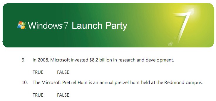 It was only two weeks ago that the Windows 7 Launch Party video cut a burning swath across the internet, leaving only scorched sensibilities and a feeling that you’d lost something fundamental never to be regained. We lied to ourselves then that it couldn’t be more than a blip on the radar, a PR pitch gone awry and furtively uploaded, unfit for human consumption as it was — a tainted morsel of the promotional meat grinder. And to be honest, I was ready to let it lie. But it wasn’t just a morsel. Little did we know, the Windows 7 launch sausage factory would be squeezing gristle into our inboxes regularly — and now they’ve gone and sent us party favors.