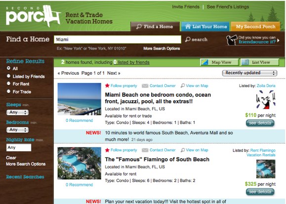 There are a vast amount of sites, such as VRBO, that serve as a platform for owners to rent out their vacation homes to vacation goers. But the main drawback to these sites is the risk of renting your home to someone who you don’t know or have any personal connection with. Second Porch hopes to mitigate this problem with its Facebook app that lets owners create a free property listing that can be broadcast to your Facebook friends.