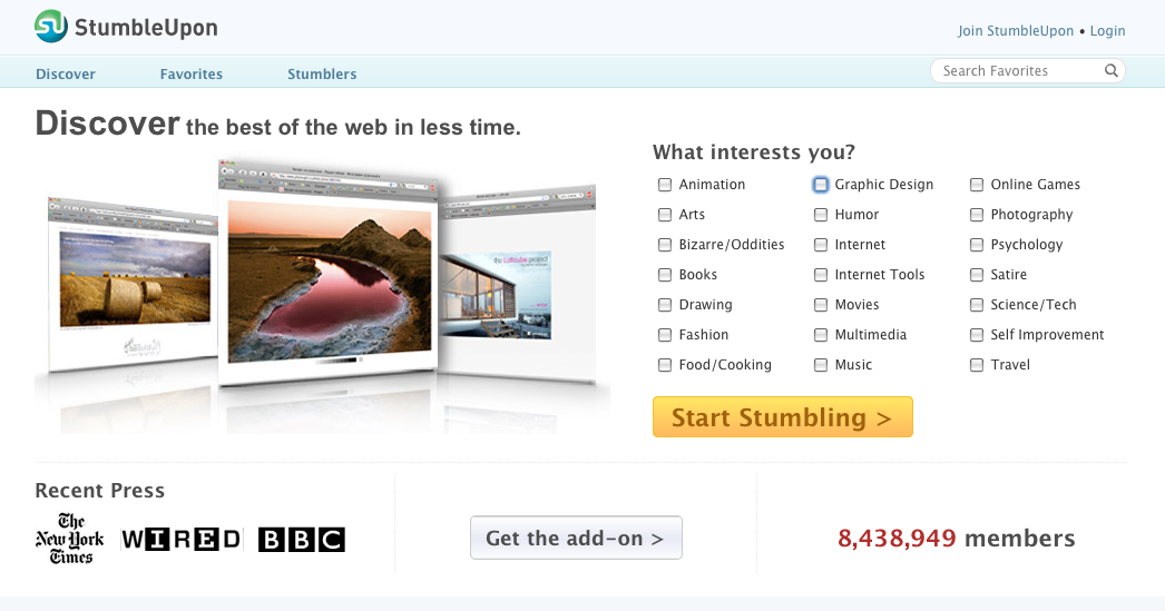 About 8 million people a month use StumbleUpon, says Camp, to bookmark and share the best sites on the Web. More than 35 million Web pages have been stumbled, and now the company has indexed them all to make them more searchable. The homepage has also been simplified to show you a stream of pages recently stumbled by people you know. New StumbleUpon users will see the redesign immediately, while existing users can switch by clicking here.