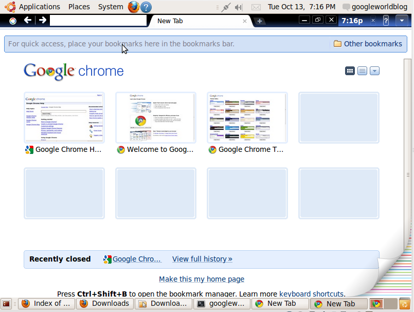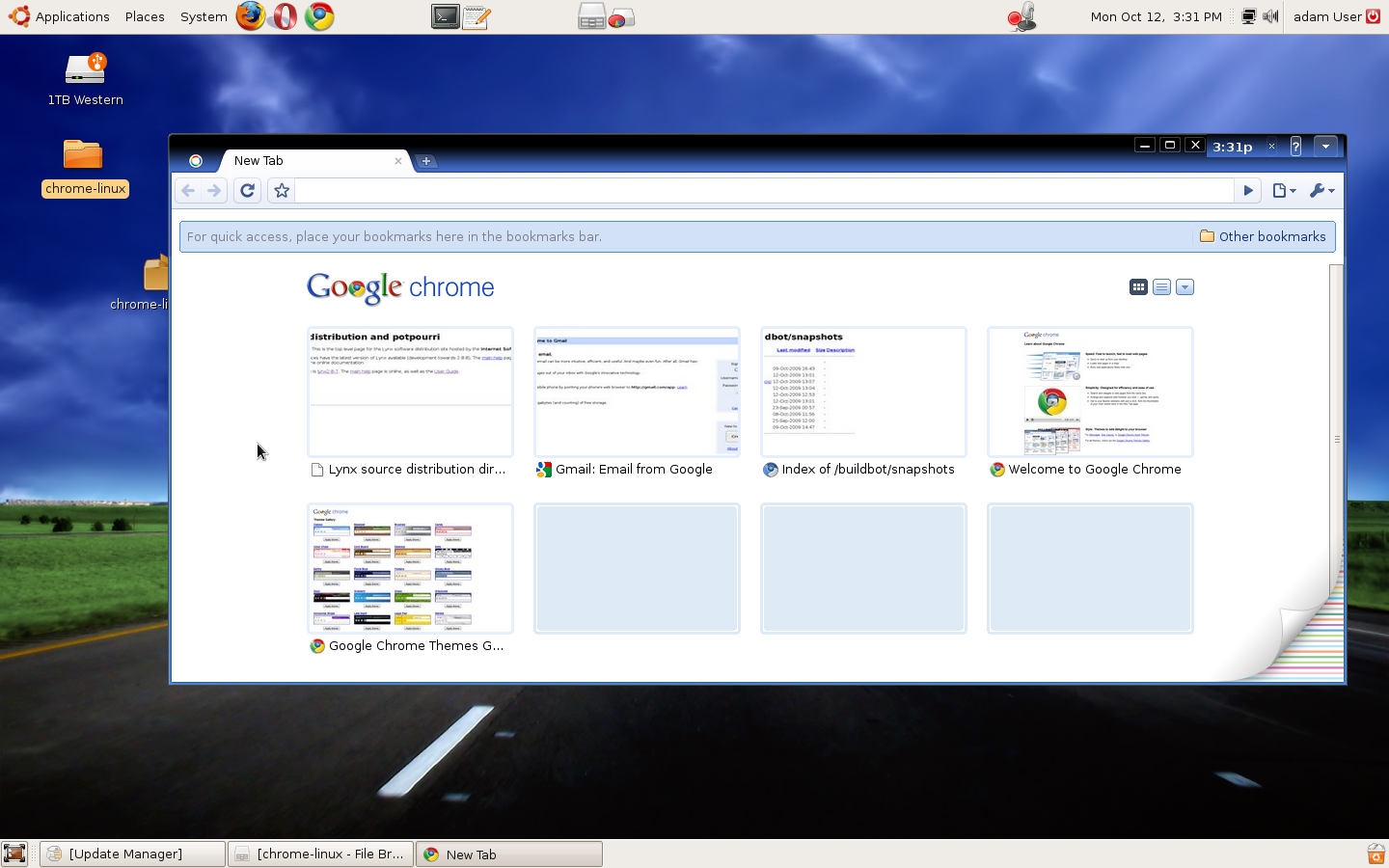 It would seem that the result is the browser aspect of Chrome OS running inside of Linux. As you can see in the screenshots below, it looks very similar to Chrome, the browser, on Windows (still the only officially released version of Chrome), but there are some key differences.