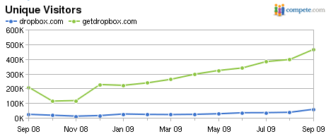 It’s hard to gauge just how important a good domain name is to a startup’s success — after all, we’ve seen plenty of companies with meaningless names do very well for themselves. But there’s a difference between a name that’s gibberish and one that’s very easy to confuse with something else, which is a test that Dropbox failed with its GetDropbox domain. As the service has grown, so too has the amount of traffic heading to Dropbox.com, which has just featured a placeholder page full of ads. According to Compete, Dropbox.com had nearly 60,000 unique visitors last month. It’s impossible to know how many of them eventually made it to the correct domain, but there’s no doubt Dropbox has been losing out on plenty of traffic and customers. This is a big win for the startup.