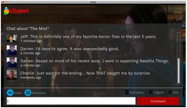 Cliqset’s Boxee app lets you comment on any videos you are watching within Boxee. The app lets users chat with their friends or any other user in real-time while watching TV episodes, movies or other video content on Boxee. While the stream that will appear while watching a video only includes Cliqset users who are watching and commenting on the same content, you can also access your comprehensive Cliqset stream from within Boxee as well. Boxee has partnered with other social media platforms such as Digg and Tumblr, to incorporate each site’s functionality within the streaming software.