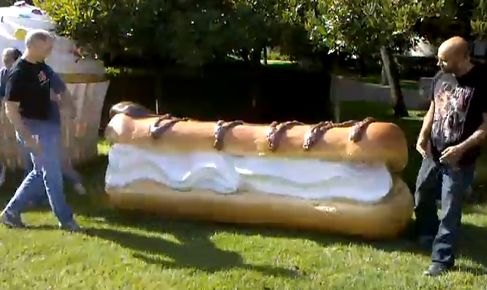 The Android robot that graces Google’s front lawn got a new dessert friend today: a giant Eclair, drizzled with some chocolate syrup. The Eclair now sits alongside two other over-sized confections: an enormous cupcake and an intimidatingly large donut. You can see a video of the upwrapping of the new treat below, taken by Android engineer Dan Morrill according to Androidandme.