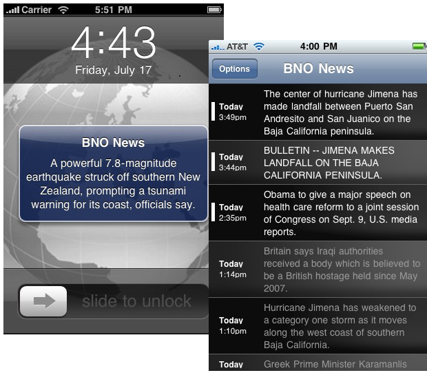 The first comes from BNO News, the tiny but incredibly efficient media organization behind the popular @BreakingNews Twitter account that gets followed by some 1,320,000 people right now. The company’s ‘breaking news’ iPhone application (iTunes link) with customized push notifications is a must-have for anyone who likes to learn about news near-instantly. PaidContent’s Rafat Ali recently gushed about BNO News and its fantastic iPhone app, saying some of the majors should step up and buy them outright. I tend to disagree: as long as they’re eating the majors’ lunch on breaking news independently, which shouldn’t they keep to their own and see what happens next?