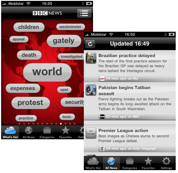 Its lifestreaming iPhone app was already worth installing, but ZenNews – billed as “a new breed of intelligent news analysis programs” – takes the cake as far as I’m concerned. The app allows you to discover story trends from the world’s leading news sources – bar TechCrunch – in real-time. It provides you with a visual way of sifting through the news of the day by displaying tag clouds made up of essential keywords that you can tap in order to drill down to what you’re interested in reading.