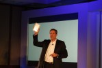 The president of barnesandnoble.com, William Lynch, is now on stage. Again, thanks everyone for being here, especially the book publishers. All the big names are in the house: Simon and Schuster, etc. He basically talked about the Web site’s effort to make it easy for people to find and buy e-books. Having bought several BN e-books, I can say it’s easy, sure, but not as easy as Amazon’s. In Amazon, the same search bar searches both dead tree books and e-books, while on BN you need to click the e-book tab or e-book drop-down to search for e-books. That is, you can’t, say, read the description and reviews of a dead tress book and then buy the e-book from the same page. He says consumers were looking for a “fun, easy to use” e-reader.