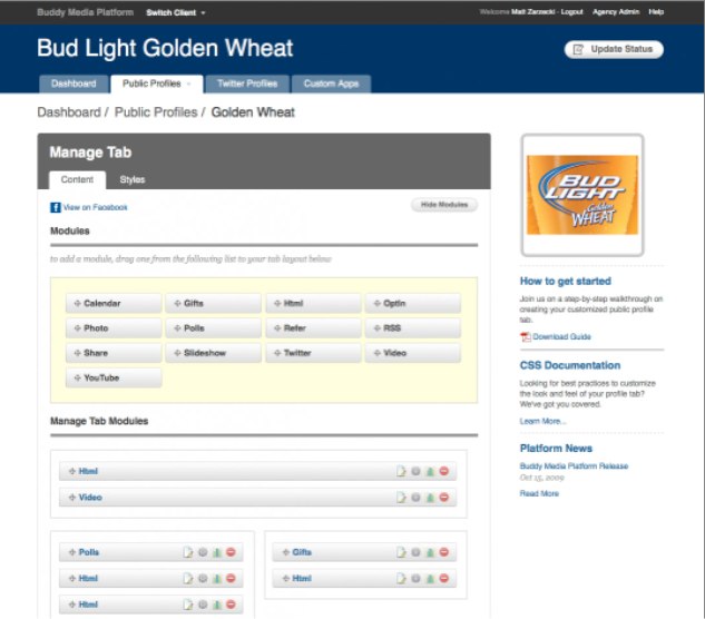 Offering a comprehensive platform that serves as a one-stop-shop for brand managers to manage social media campaigns is a wise move for Buddy Media. There a few services that are providing similar services out there, such as PeopleBrowsr and CoTweet (which focuses on Twitter). But Buddy Media’s compelling Facebook features, such as the ability to make a visually appealing and interactive page, could be popular among brand managers that have little to no technical background.