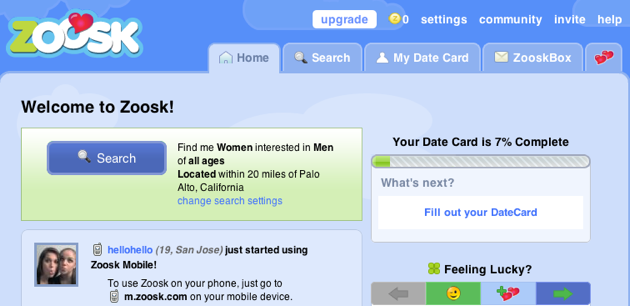 Zoosk launched back in 2007, and has been showing some strong growth recently, particularly on social networks. Zoosk co-founders Alex Mehr and Shayan Zadeh say that the site differentiates itself from other dating sites like Match.com by tapping into your social graph. The site has a strong presence across social networks including Facebok, MySpace, Bebo, Hi5, and Friendster, and users can also sign in through the site’s web portal at Zoosk.com. And if that’s not enough, you can reach Zoosk through a desktop AIR client and a mobile app. To help build your Zoosk profile, you can import information from whichever social network you’re using Zoosk on. You can also tie it together with services like Last.fm and Netflix, to give potential matches an idea of your music and movie taste.