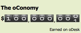 Today, oDesk’s “oConomy” meter, which is the amount of money that is earned from workers on oDesk, hit $100 million. The oConomy showcases data from the work activity of 350,000+ oDesk users in over 150 countries.