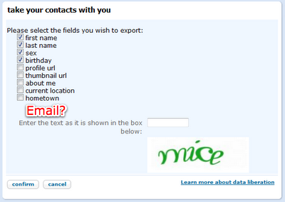 Orkut continues to undermine Google’s Data Liberation Front, whose singular goal is to “make it easier for users to move their data in and out of Google products”. Earlier this month the Orkut friend exporter, which makes it easy to export your friends’ contact information to a standard CSV file, was mysteriously broken due to a bug. The timing of the bug was more than a little suspect — Orkut has been hemorrhaging users lately in India and Brazil as people flock to Facebook, which takes advantage of Orkut’s friend export tool to help users make the switch. Now Julio Vasconcellos over at Armchairfounder has noticed how Orkut managed to fix their bug while still making it harder for members to switch to Facebook: the tool works, but it no longer includes your friends’ Email addresses.