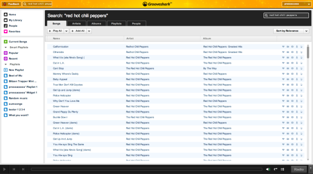 But the back-end tweaks that have increased the speed of the application are what’s making me seriously considering switching to Grooveshark for most of my online music needs. Playback between tunes is now seamless, with no more lag in between tracks when you’ve added multiple ones to a playlist. Switching between menu items and tabs is as fast as I consider possible inside a browser. In short: great new design combined with an excellent user experience.