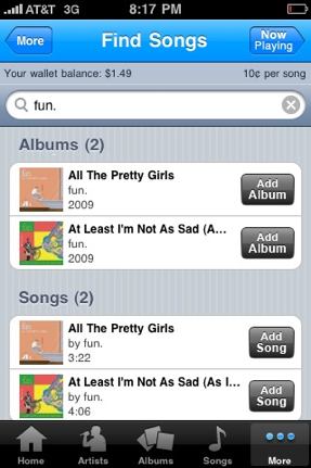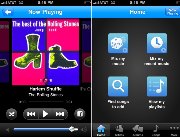 The app will be familiar to anyone who has used the iPhone’s native iPod app. The big difference is that all of your songs are streamed from the cloud, so you don’t have to worry about syncing your songs. The app is also better for music discovery than the normal music app, because you don’t have to wait for songs to download — you can instantly add an album to your music library in one click. And it’s significantly cheaper.