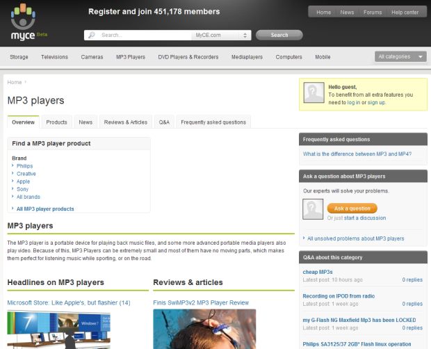 Much like the recently launched gdgt, MyCE lets you create a user profile that includes lists of products you own and wish you owned. You can go to the site to discuss news about certain electronics and gadgetry, argue about what certain products lack and what they rule at, compare pricing and write reviews, but also to set up or join conversations centered around support and troubleshooting.