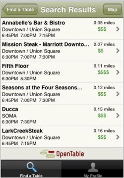 OpenTable allows diners to find and book reservations at more than 11,000 different restaurants in multiple countries via mobile applications for the iPhone, Palm, Blackberry and Android. Other smartphone users can book reservations through OpenTable’s mobile-optimized Web site.